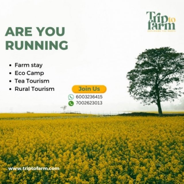 *Trip to Farm* is a platform that helps people discover and book amazing *farm stays, eco camps, home stays, and rural tourism experiences*. We connect travelers with nature-rich getaways, where they can enjoy peaceful stays, fresh food, and unique activities like farming, hiking, and exploring local culture. If you run a *farm stay, home stay, eco camp, or any rural tourism business*, join us! We help you reach more visitors, grow your business, and promote sustainable tourism.