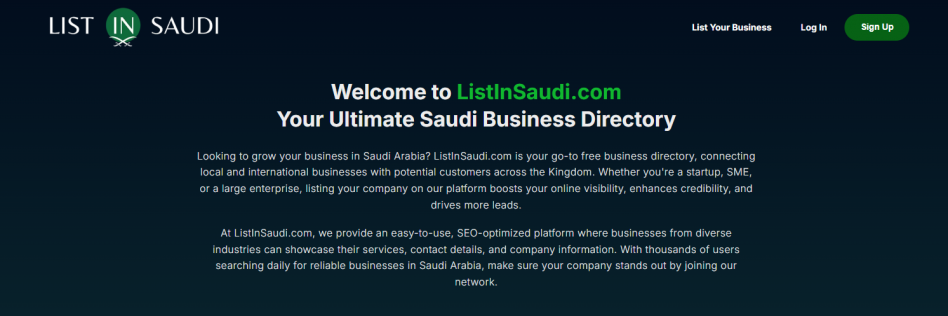 Welcome to the ultimate destination for online business listings in Saudi Arabia—your comprehensive Saudi business platform built to connect customers with trusted businesses from every corner of the Kingdom. Whether you're in Riyadh, Jeddah, Dammam, or any other city, our local businesses directory in Saudi Arabia makes it quick and easy to find services in Saudi tailored to your needs.