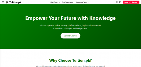 Tuition.pk is Pakistan’s premier online learning platform, offering a wide range of educational services—from course-based learning to connecting students with expert tutors (both online and in-person).